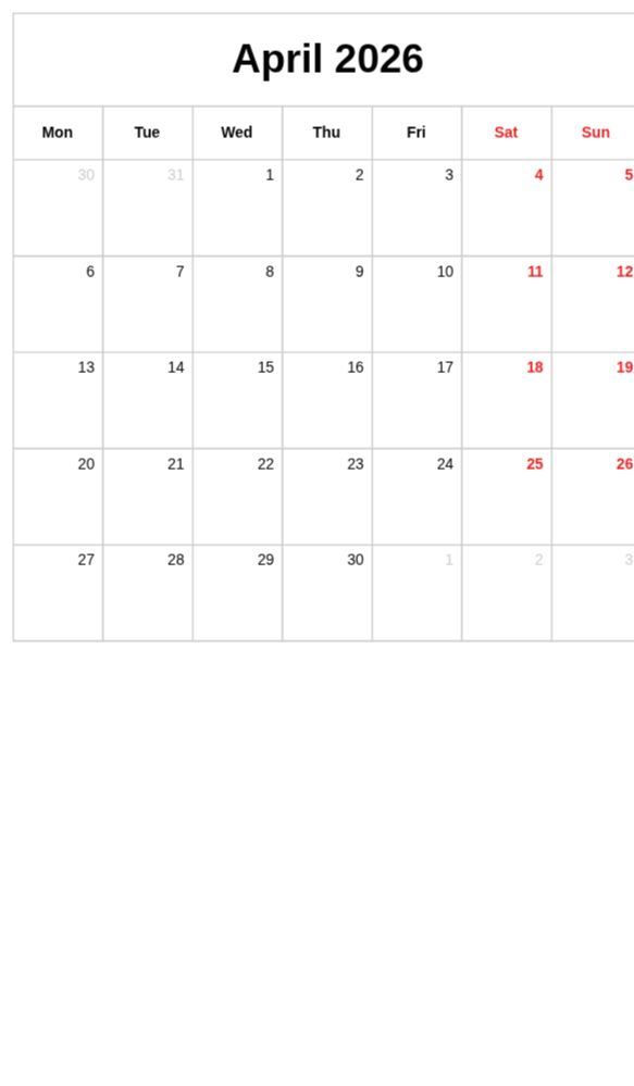 Wall Calendar Single Page